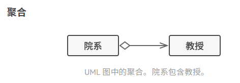 聚合是一种特殊类型的关联, 用于表示多个对象之间的 “一对多”、 “多对多” 或 “整体对部分” 的关系。 通常在聚合关系中, 一个对象 “拥有” 一组其他对象, 并扮演着容器或集合的角色。 组件可以独立于容器存在, 也可以同时连接多个容器。 在 UML 图中, 聚合关系使用一端是空心菱形, 另一端指向组件的箭头来表示。
