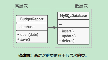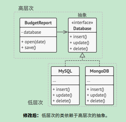 高层次的类不应该依赖于低层次的类。 两者都应该依赖于抽象接口。 抽象接口不应依赖于具体实现。 具体实现应该依赖于抽象接口。