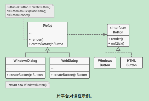 // 逻辑,这些逻辑依赖于由工厂方法返回的产品对象。子类可通过重写工厂方